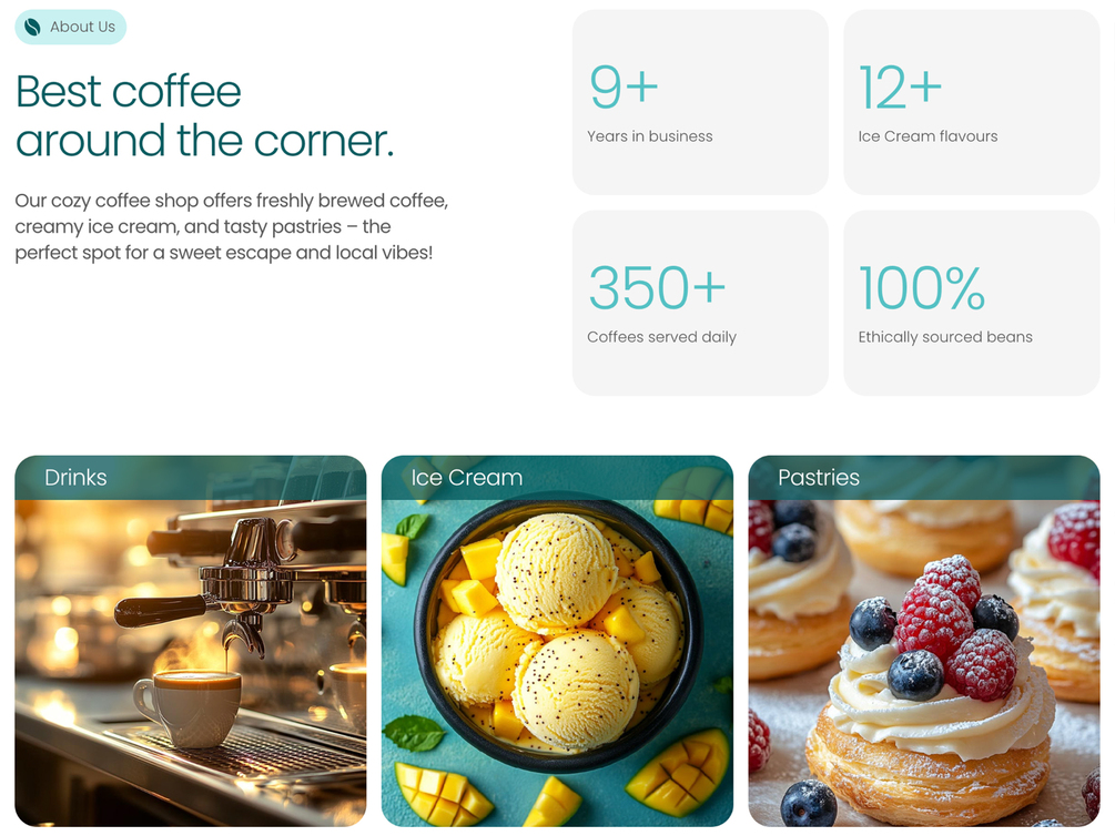 Koffee is a sleek, modern, and intuitive Framer template designed for small cafés looking to showcase their menu online.